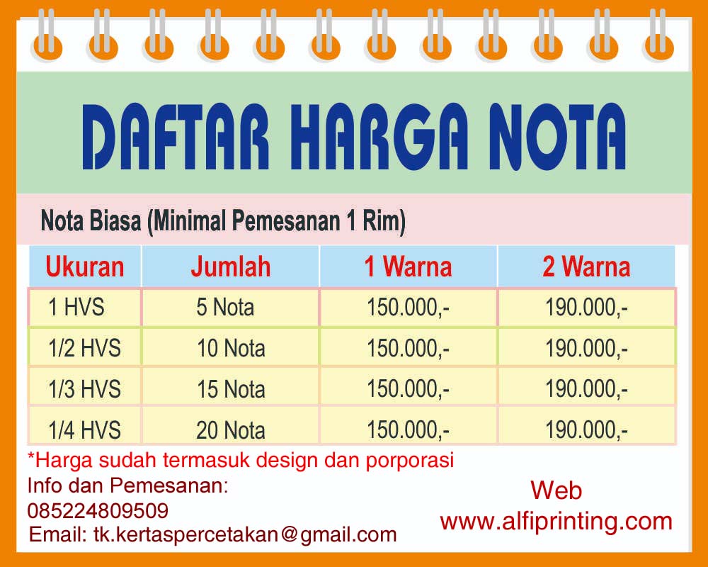 Alfi Percetakan dan Digital Printing: Daftar Harga Nota Terbaru
