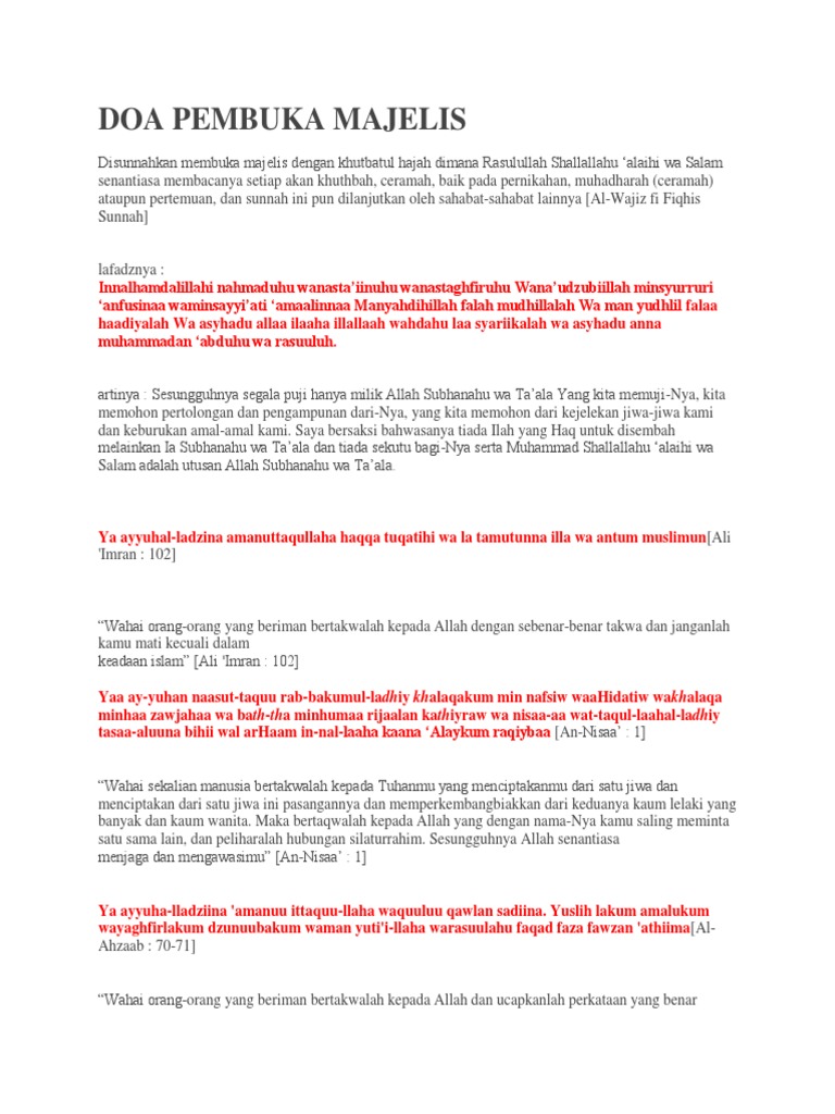 DOC) Ada beberapa doa pembuka majelis yang dapat kita gunakan saat membuka suatu pembicaraan atau mengawali pidato | Ismail saputra - Academia.edu