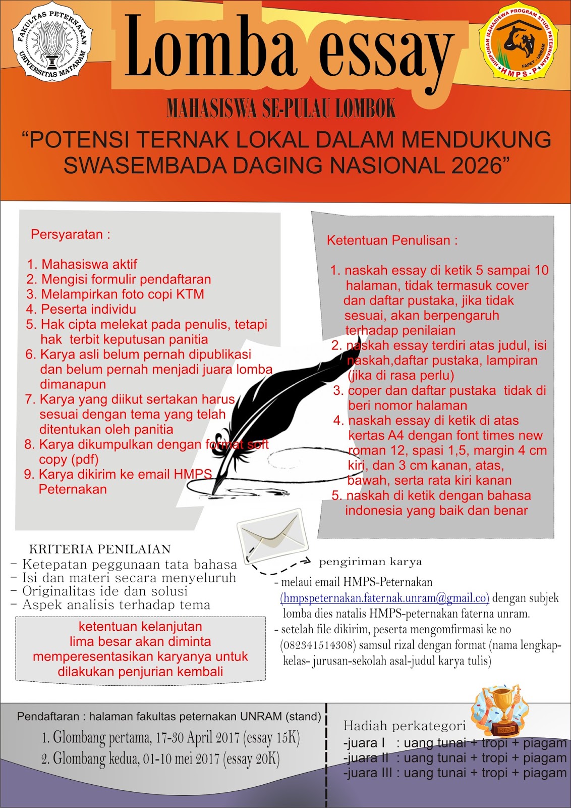 Lomba Menulis Esai Nasional 2017 di Universitas Mataram - Info Lomba 2020 Terbaru