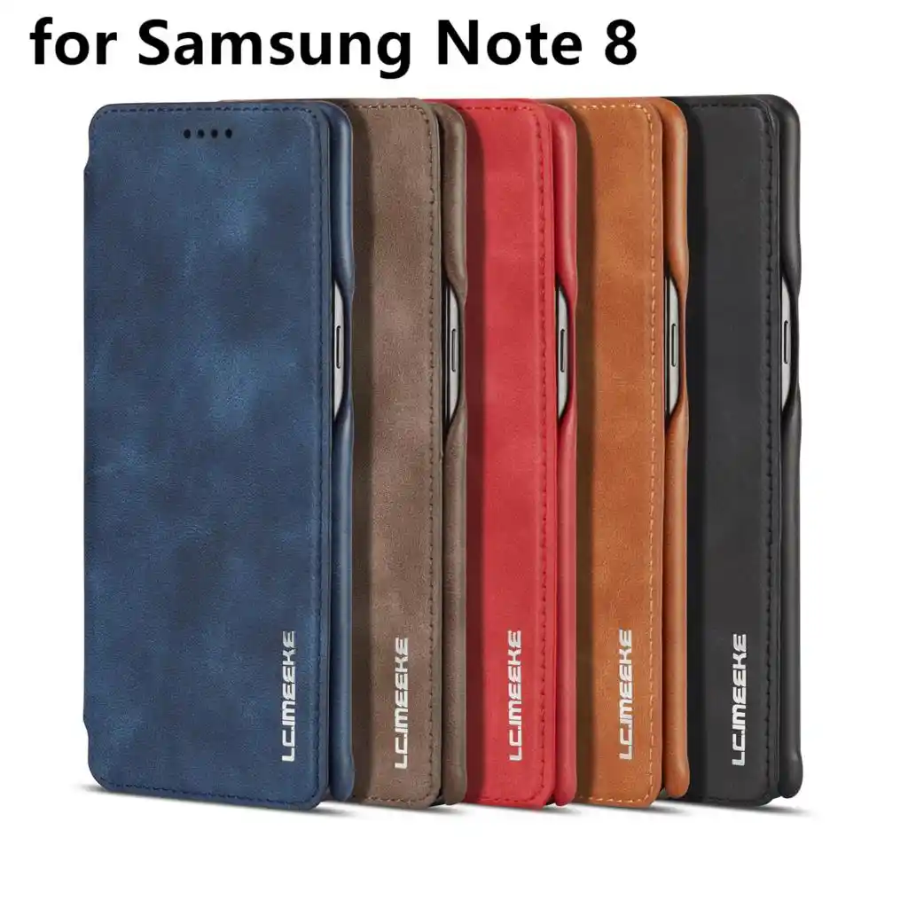 LC.imeeke Luxury Magnetic attraction flip cover case for Samsung Galaxy Note 8 N950F business holster retro Leather case simple|Flip Cases| - AliExpress