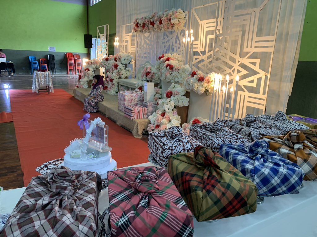 Membuat seserahan pernikahan dari bed cover di Bekasi