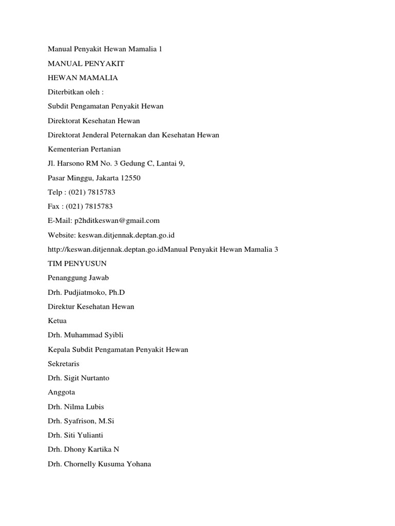 MANUAL PENYAKIT HEWAN MAMALIA - PDF Download Gratis
