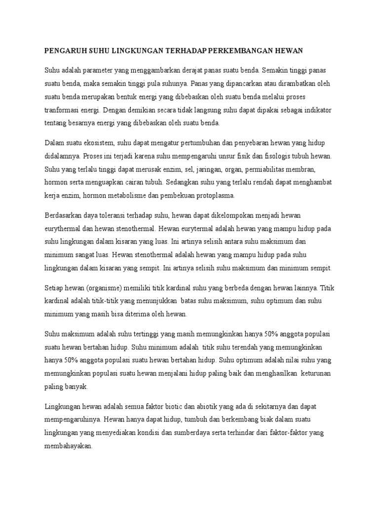 Pengaruh Suhu Lingkungan Terhadap Perkembangan Hewan (Paper)