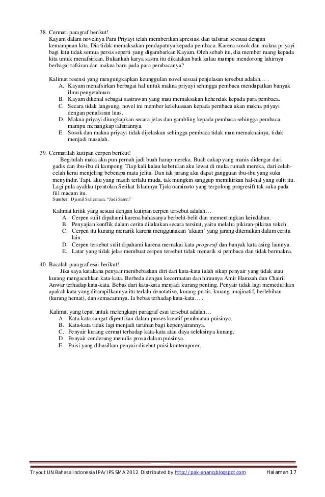 Soal prediksi dan tryout un bahasa indonesia sma program ipa ips