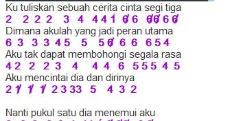 Not Angka Pianika dan Lirik Lagu Lelaki Cadangan - T2 - CalonPintar.Com