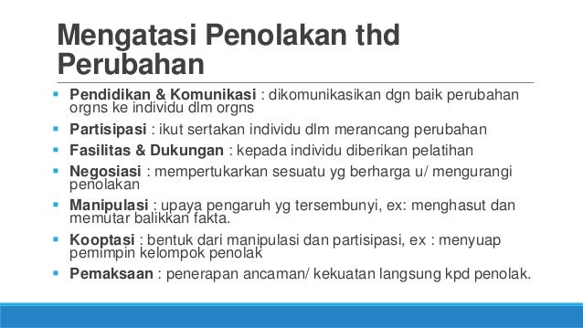 Manajemen: Teknik Mengurangi Penolakan Terhadap Perubahan …