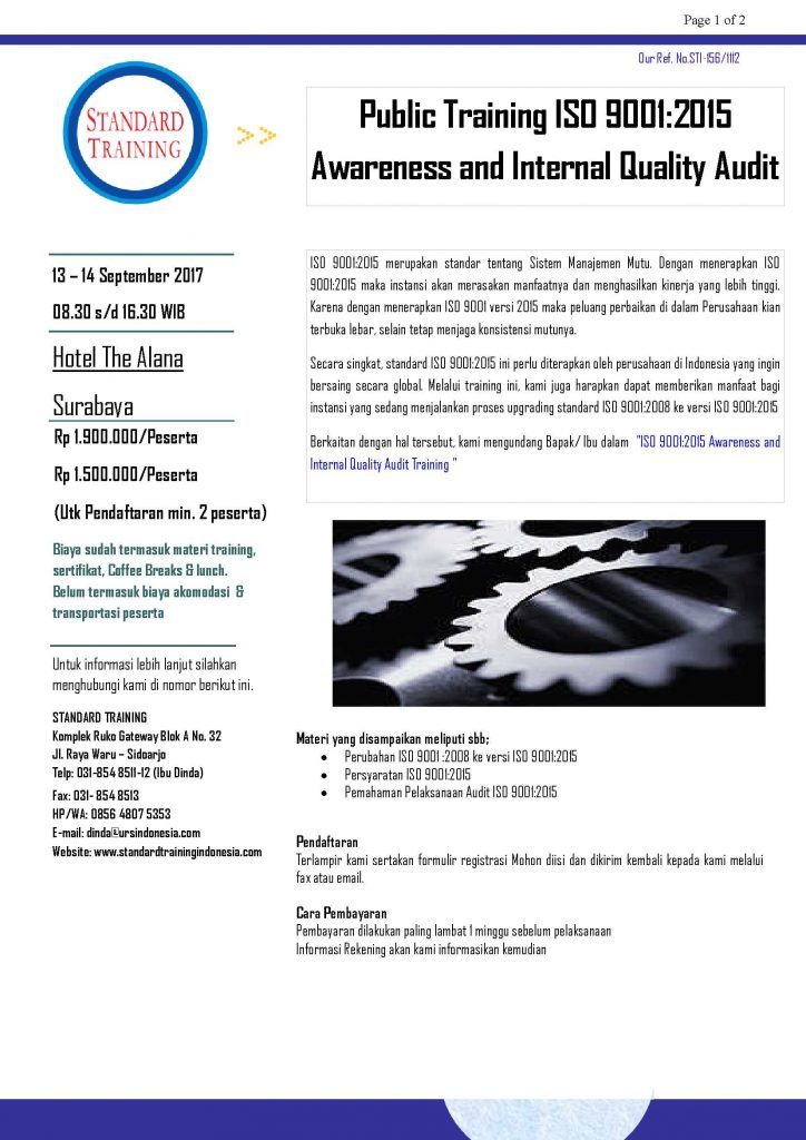 Hai Event on Twitter: “Public Training Awareness & Internal Quality Audit ISO 9001:2015 – The Alana Hotel Surabaya, 13-14 September 2017 https://t.co/DrxtjkqRW5… https://t.co/9hSk74nFnO”