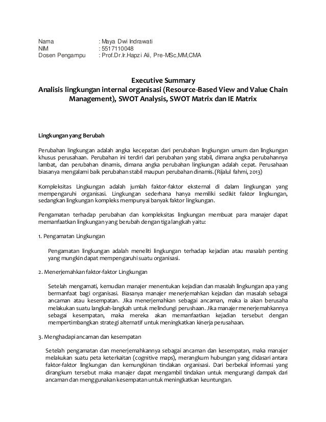 SM,Maya Dwi Indrawati,Hapzi Ali,Analisis Lingkungan internal organisa…
