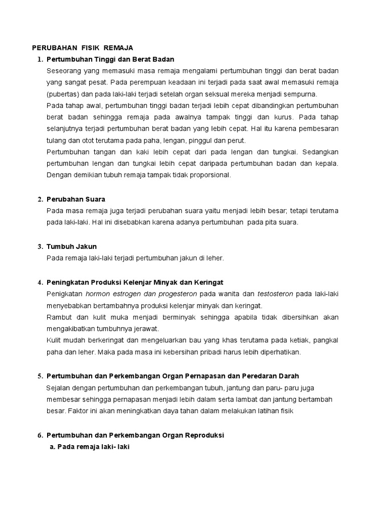 Perkembangan Fisik Remaja