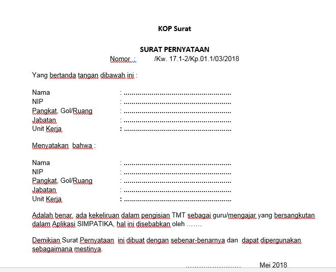 Contoh Surat Pernyataan Edit TMT Guru Madrasah - Harian Madrasah