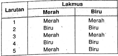 kertas lakmus merah dan lakmus biru dicelupkan ke dalam beberapa …
