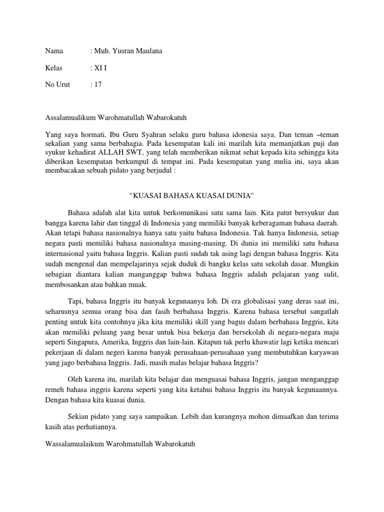 Contoh pidato 5 paragraf tentang kuasai bahasa kuasai dunia …