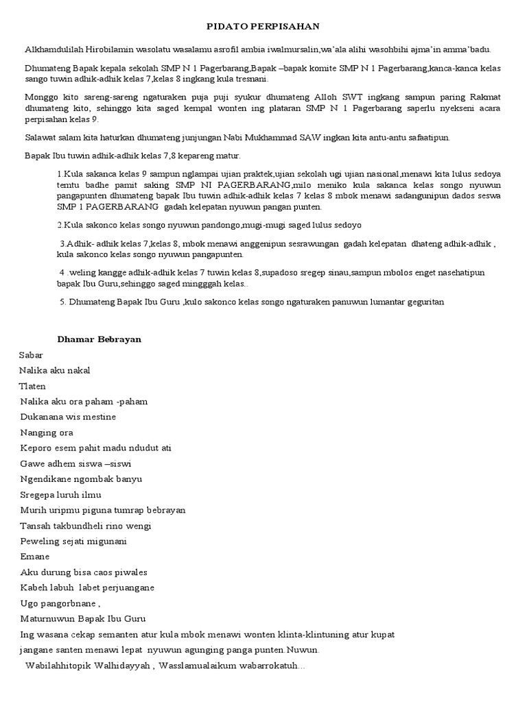 Contoh Pidato Perpisahan Kls 9 Bahasa Jawa