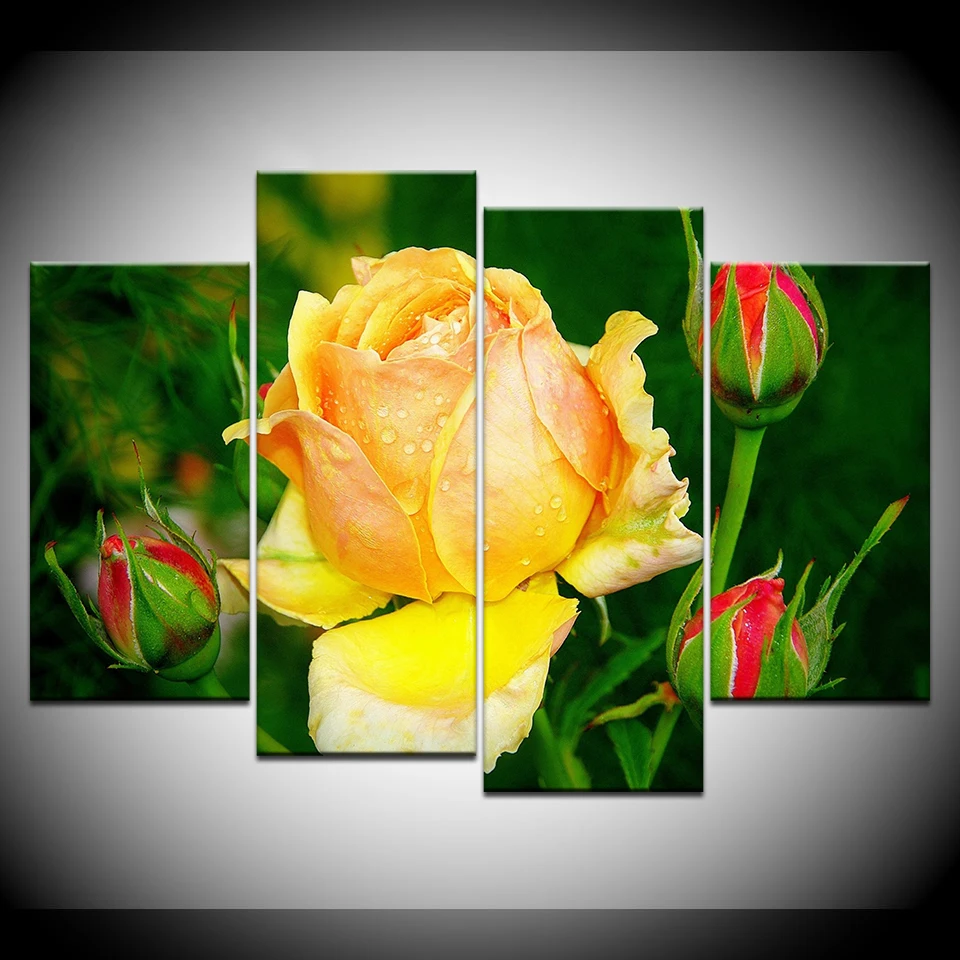 Kanvas Lukisan Kuning dan Merah Bunga Mawar 4 Buah Dinding Seni Lukisan Modular Wallpaper Cetak Poster Ruang Tamu Dekorasi Rumah|Painting & Calligraphy| - AliExpress