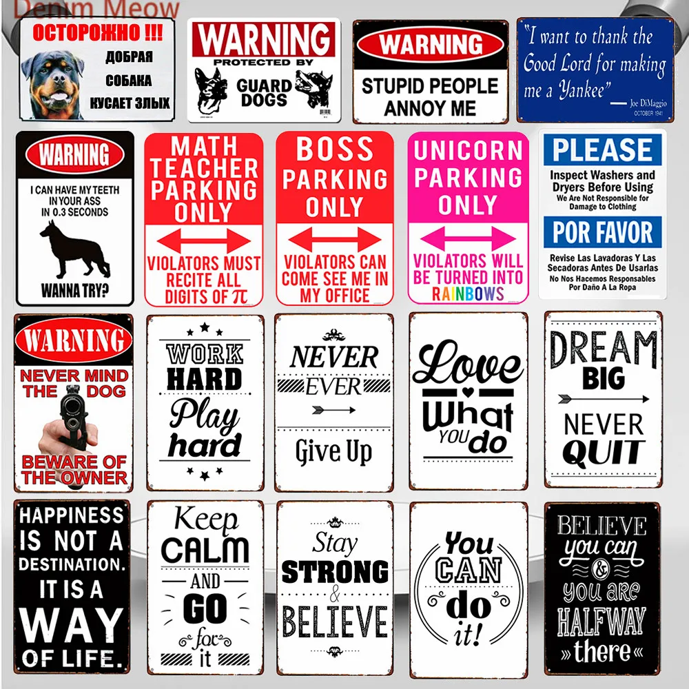 Waspadalah Terhadap Anjing Logam Tanda Pemberitahuan Peringatan Parkir Hanya Poster Tidak Pernah Menyerah Inspirasi Teks Lukisan Dapur Dekorasi Rumah WY73|Plak & Tanda-tanda| - AliExpress