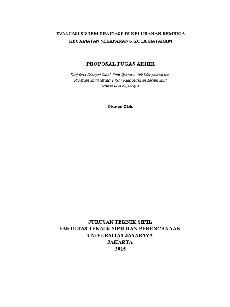 CONTO PROPOSAL Evaluasi Sistem Drainase Di Kelurahan Rembiga Kecamatan Selaparang Kota Mataram
