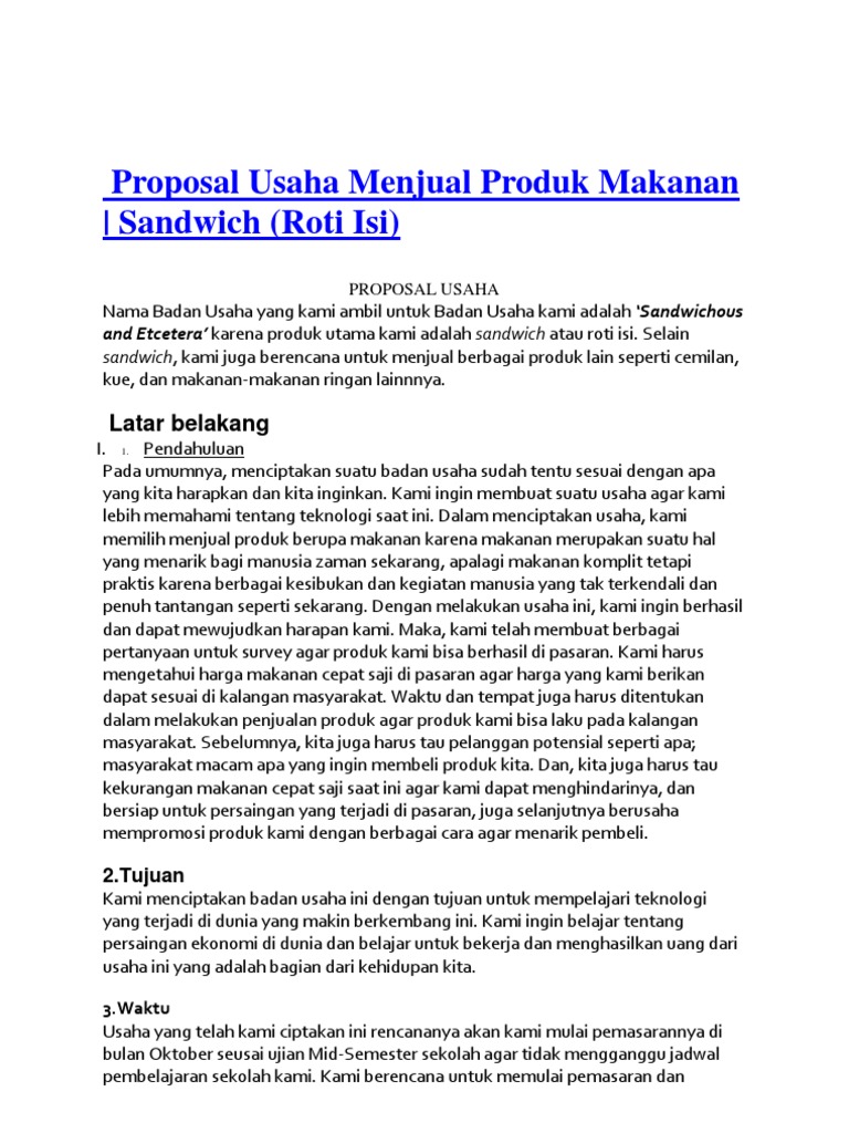DOC) CONTOH PROPOSAL USAHA MAKANAN | Yusraka Yusraka - Academia.edu