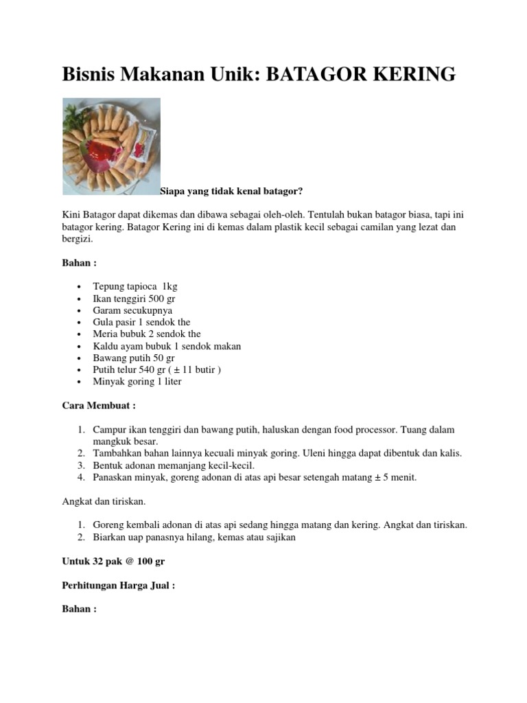 LAPORAN AKHIR PKM-K. Batagor Beranak (Berani Makan Enak) sebagai Jajanan Inovasi yang Murah dan Bergizi Tinggi BIDANG KEGIATAN PKM-KEWIRAUSAHAAN - PDF Free Download
