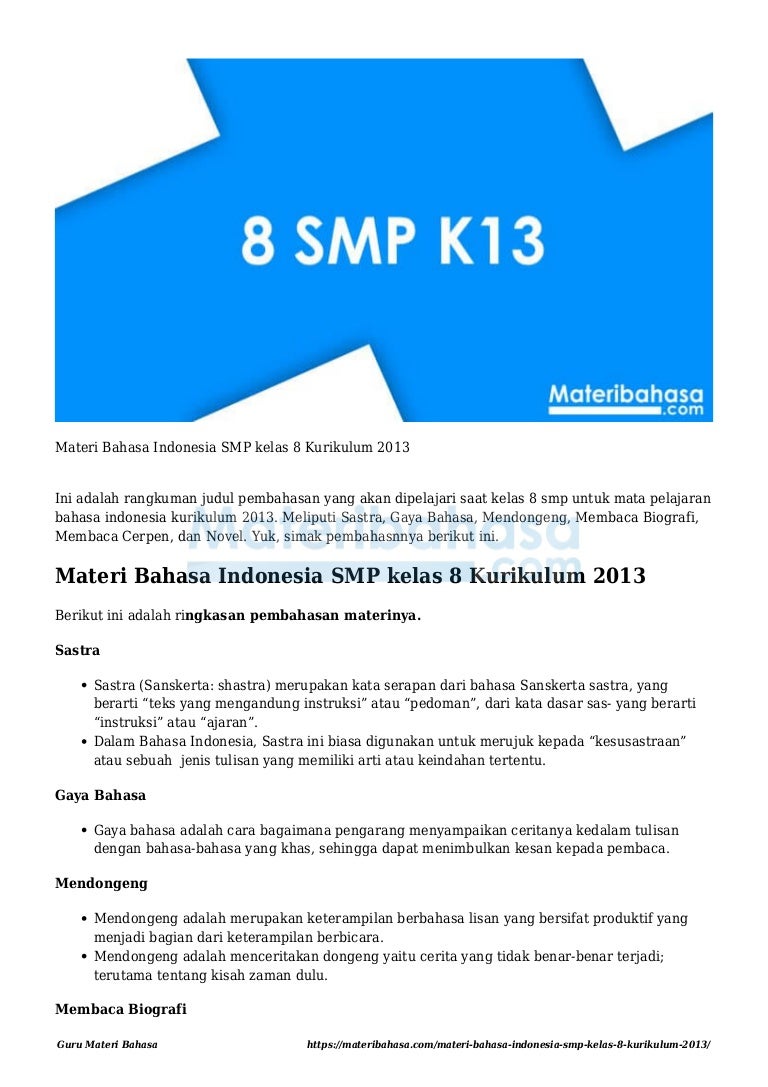 Materi bahasa indonesia smp kelas 8-kurikulum-2013