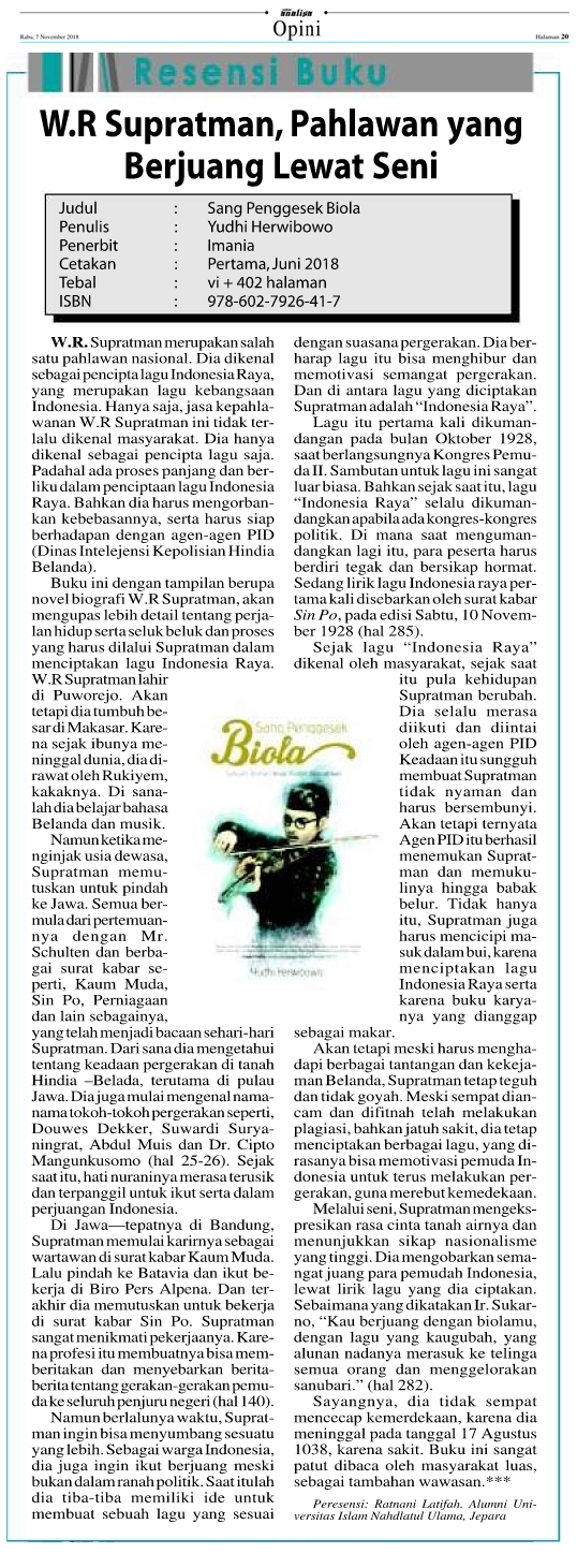 Coretan Kazuhana El Ratna Mida (Ratnani Latifah) : [Resensi] W.R Supratman, Pahlawan yang Berjuang Lewat Seni