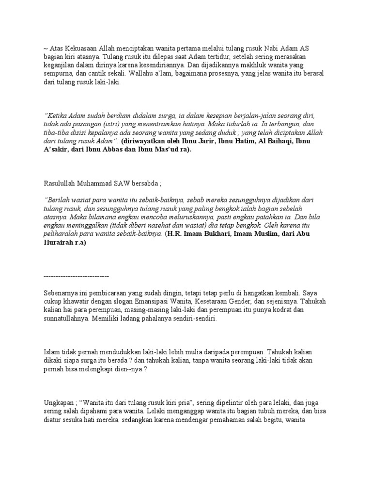 Atas Kekuasaan Allah Menciptakan Wanita Pertama Melalui Tulang Rusuk Nabi Adam as Bagian Kiri Atasnya