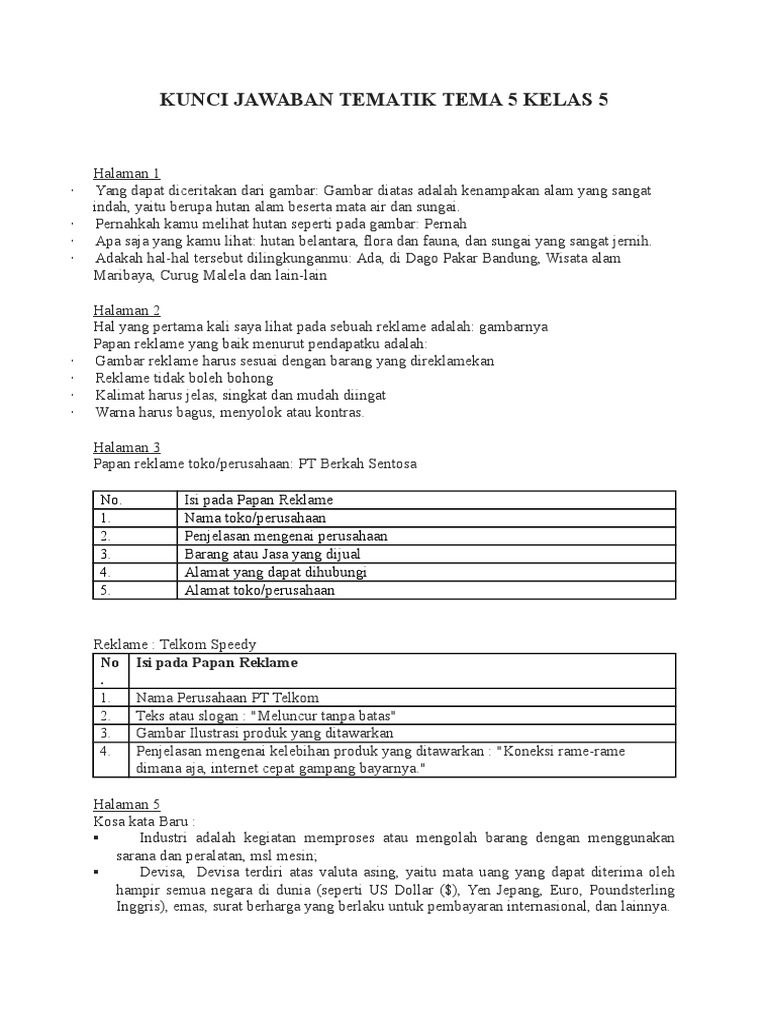 Kunci Jawaban Tematik Tema 5 Kelas 5 - [DOCX Document]