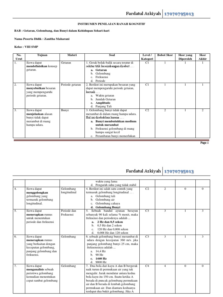 372979125-Soal-essay-getaran-dan-gelombang-kelas-8-smp.docx - 1 Dalam dua menit terjadi 960 getaran pada suatu partikel Tentukan a periode getaran b | Course Hero