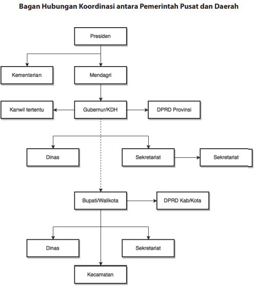 Kewenangan serta Bagan Hubungan Koordinasi Struktural dan Fungsional Pemerintah Pusat dan Daerah Dalam Otonomi Daerah - materiedukasi.com