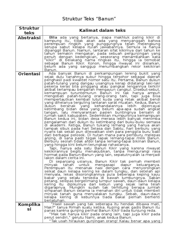 Struktur Teks Cerpen Banun Karya Damhuri Muhammad - Berbagai Struktur
