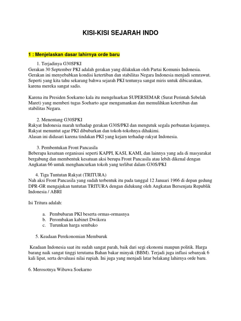 Contoh Soal tentang Orde Baru, PKI, Tritura, Supersemar, Pelita …