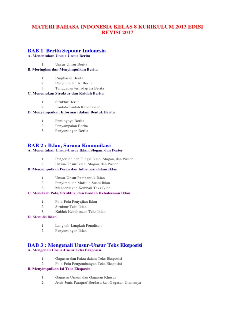 Materi Bahasa Indonesia Kelas 8 Kurikulum 2013 Edisi Revisi 2017