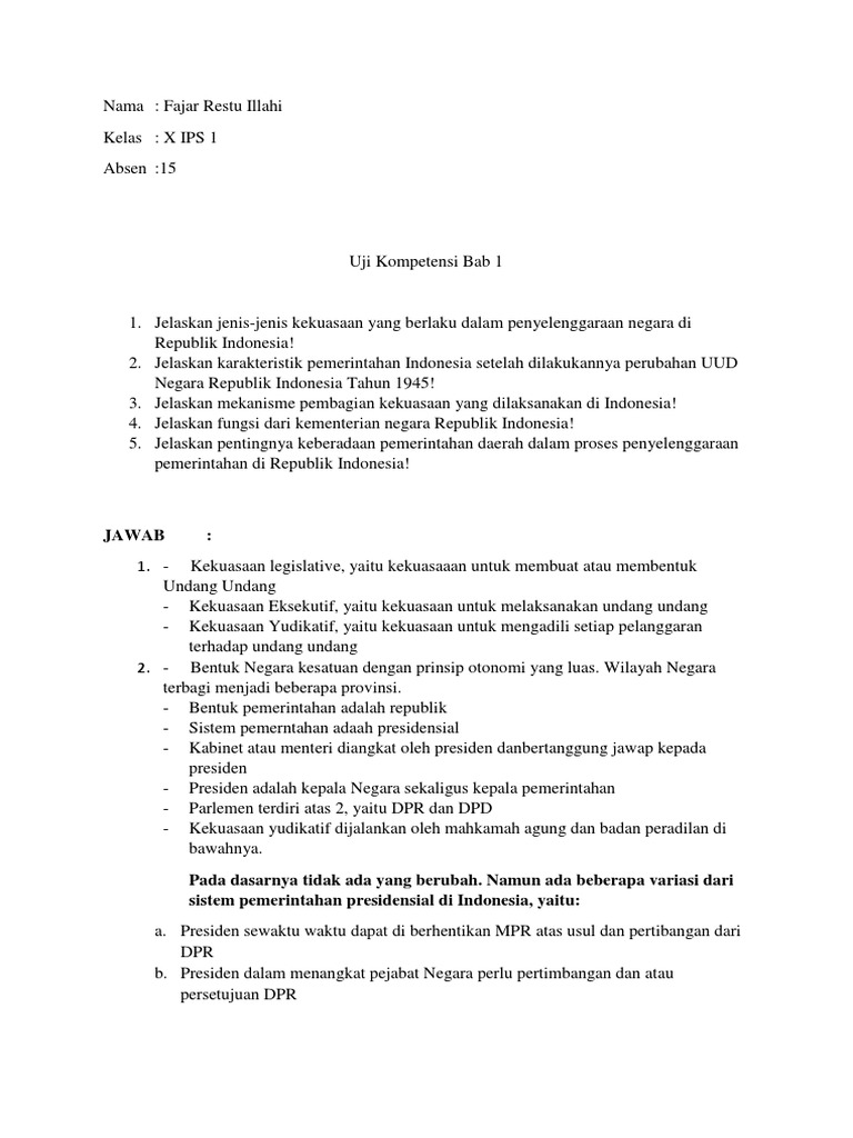 Jelaskan Karakteristik Pemerintahan Indonesia Setelah Amandeman …