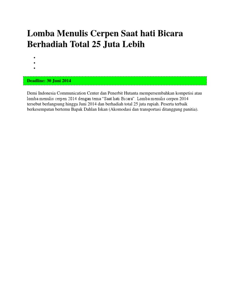Lomba Menulis Cerpen “Saat Hati Bicara” - DICC 2014 | Info Lomba …