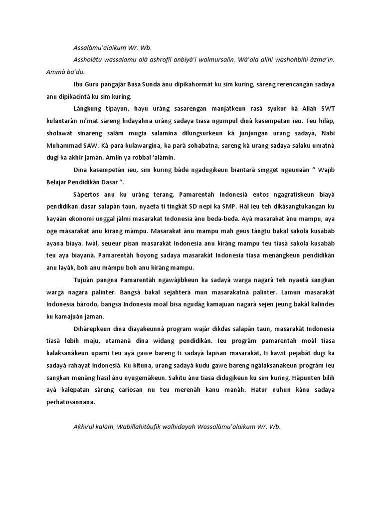 Contoh Kata Sambutan Dalam Bahasa Sunda - Kumpulan Kata