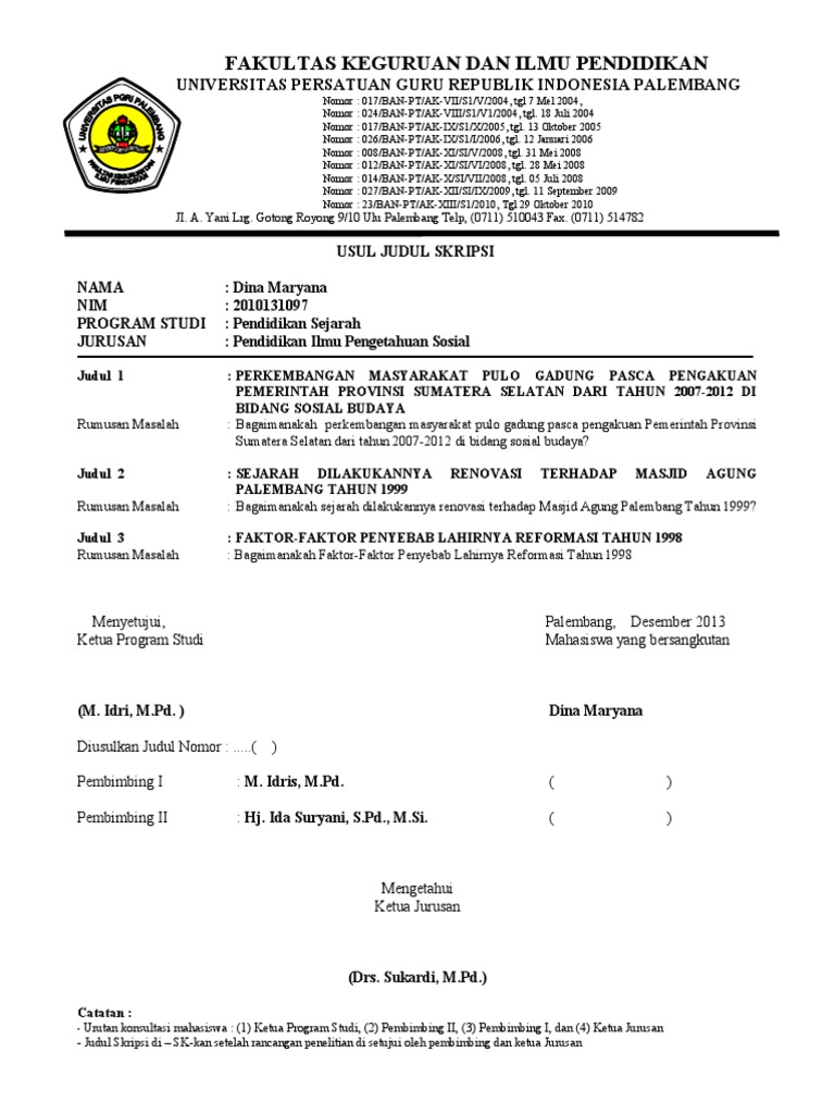 Pengajuan Judul Skripsi – PENDIDIKAN SEJARAH FKIP UNRI