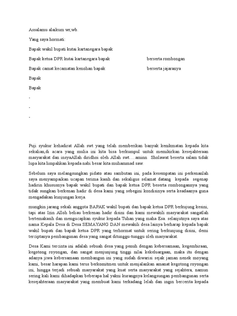 Contoh Kata Sambutan Camat | zona ilmu 8