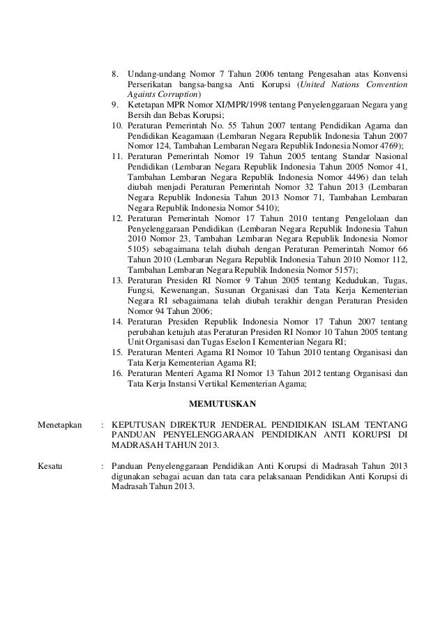 Pedoman Anti Korupsi Madrasah