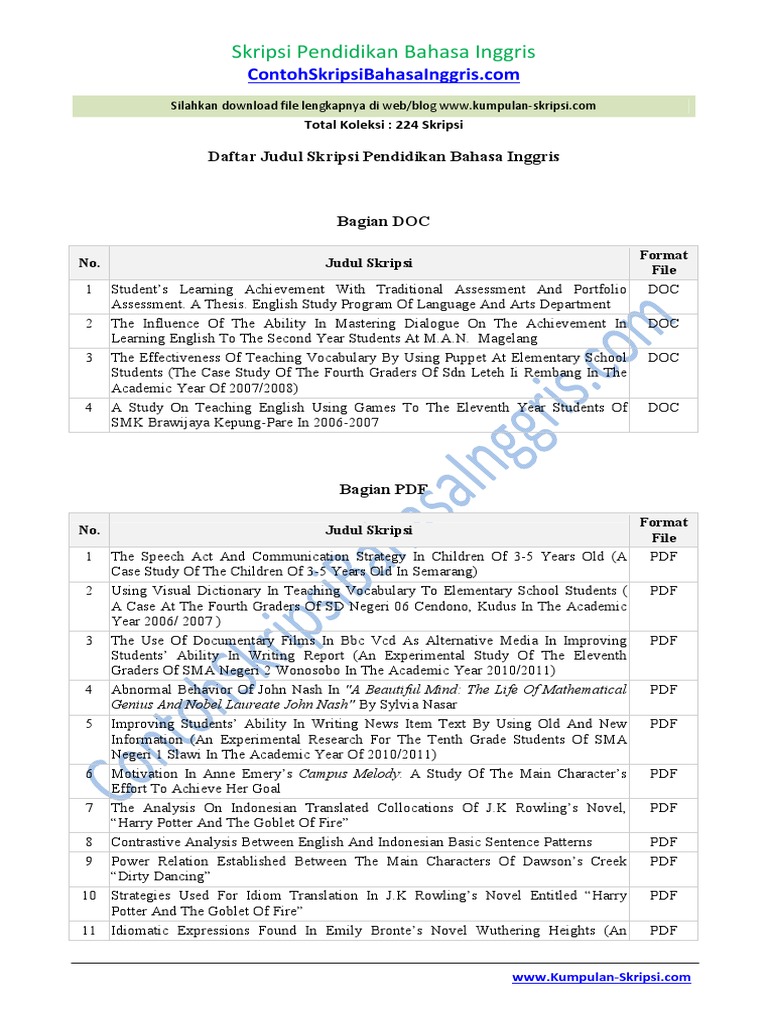 Kumpulan Judul Skripsi Pendidikan Bahasa Inggras Lengkap | Students | Teachers