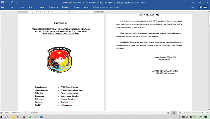 Download Contoh Proposal Rehab Sekolah Wadah Guru