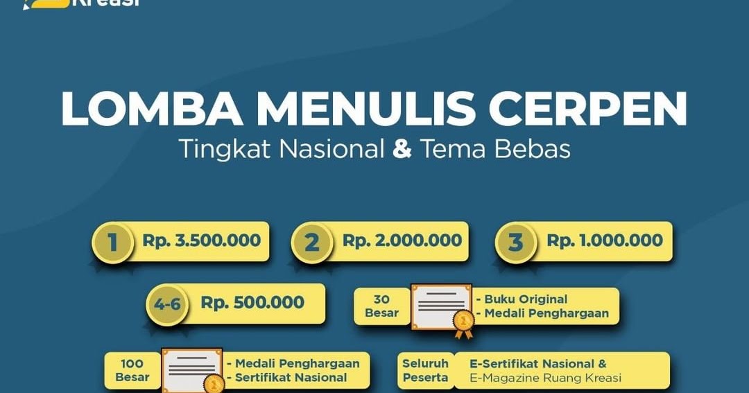 Lomba Menulis Cerpen Tema Bebas Berhadiah Jutaan Rupiah Tingkat Nasional - Tulis.me | Info Lomba Menulis