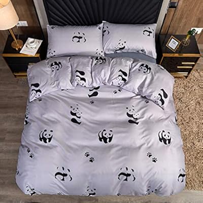 Amazon.com: YZBEDSET Gray Cartoon Panda 3D Bedding Set Printed …