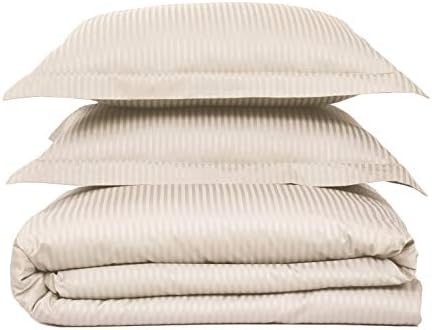 Feather Stitch 500 Thread 3 Pieces Duvet Cover Set 100% Cotton 1 Duvet Cover with 2 Pillow Shams, Ultra Soft and Easy Care Breathable Premium Hotel Quality (Beige, Full/Queen): Amazon.sg: Home