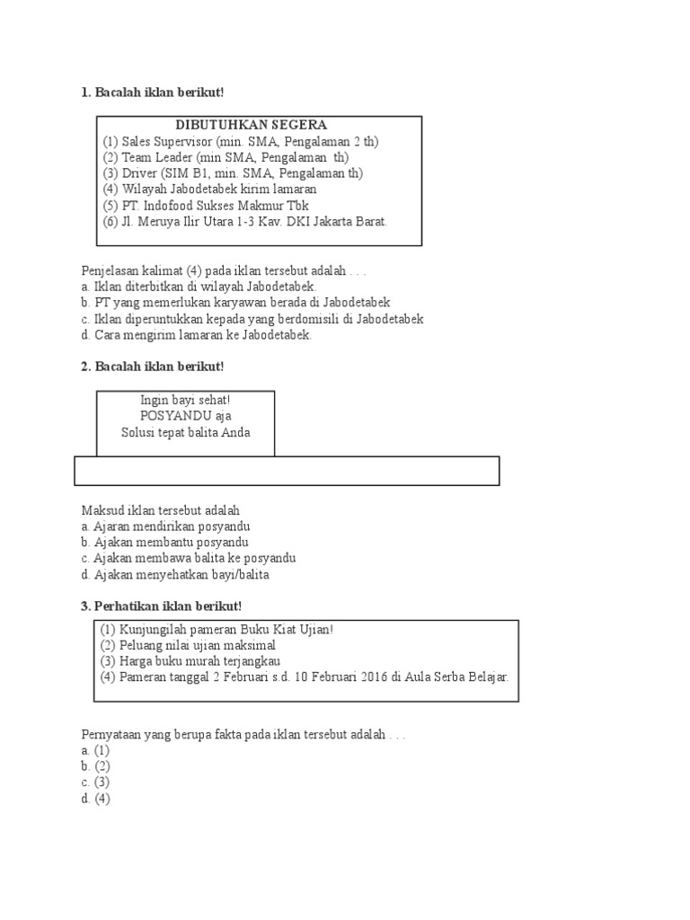 soal teks iklan