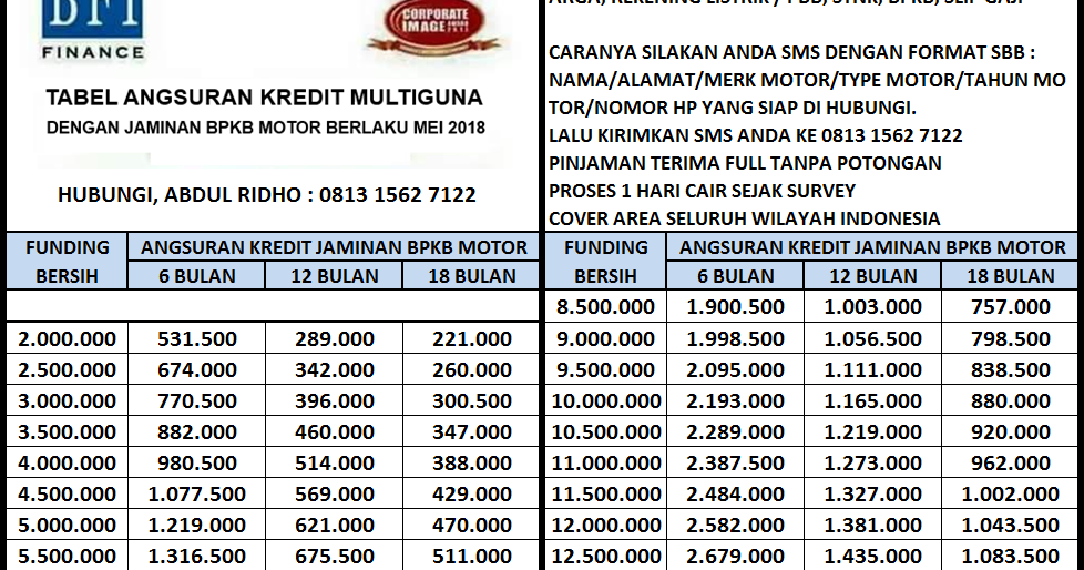 Terjual TABEL ANGSURAN KREDIT DANA TUNAI JAMINAN BPKB MOTOR DAN MOBIL. TERBARU | KASKUS
