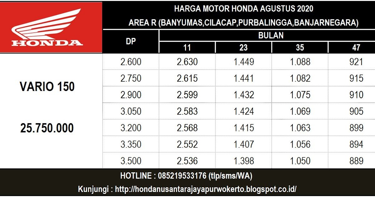 DAFTAR HARGA MOTOR HONDA PURBALINGGA | DAFTAR HARGA HONDA PURBALINGGA