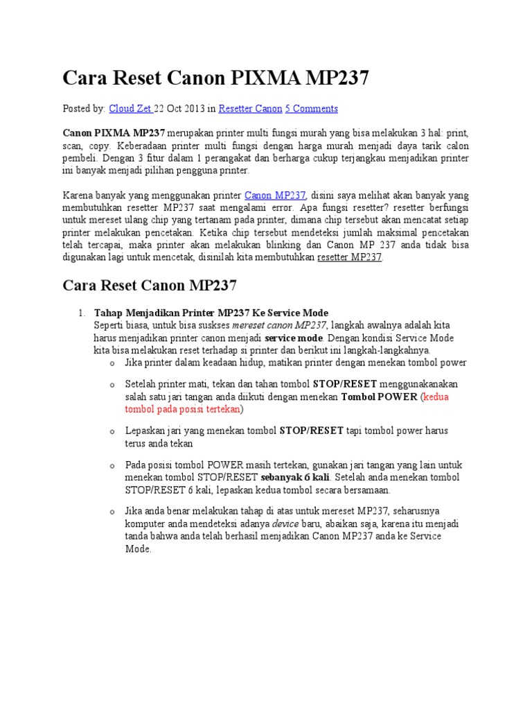 Cara Reset Printer Canon MP237: Cara Simple Cepat dan Mudah (Work)!