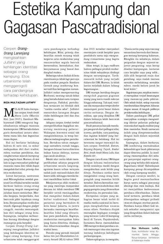 Gubuk Riza (gubuk kata, gubuk derita): Estetika Kampung dan Gagasan Pascatradisional (Esai_Riza Multazam Luthfy, terbit di harian “Lampung Post” edisi Minggu, 13 Desember 2015)