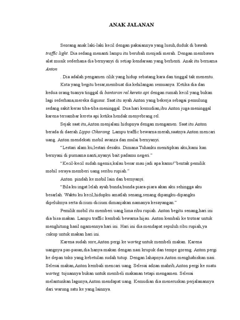 Contoh Cerpen tentang Anak Jalanan, Demi Sesuap Nasi - Contoh …