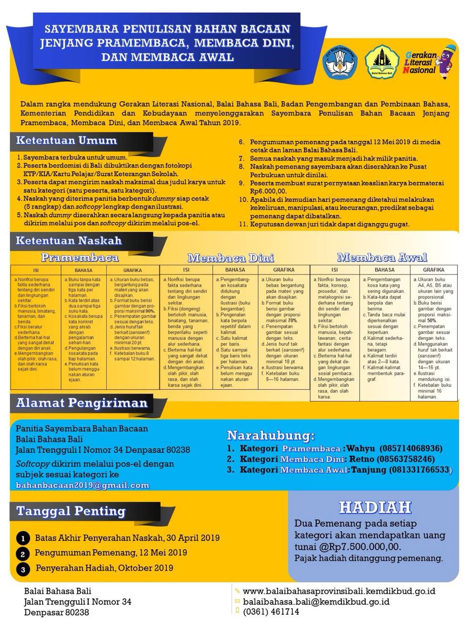 Sayembara Penulisan Bahan Bacaan Jenjang Pramembaca, Membaca Dini …