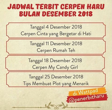 Penerbit Haru on Twitter: “Jadwal terbit cerpen @wattpad …
